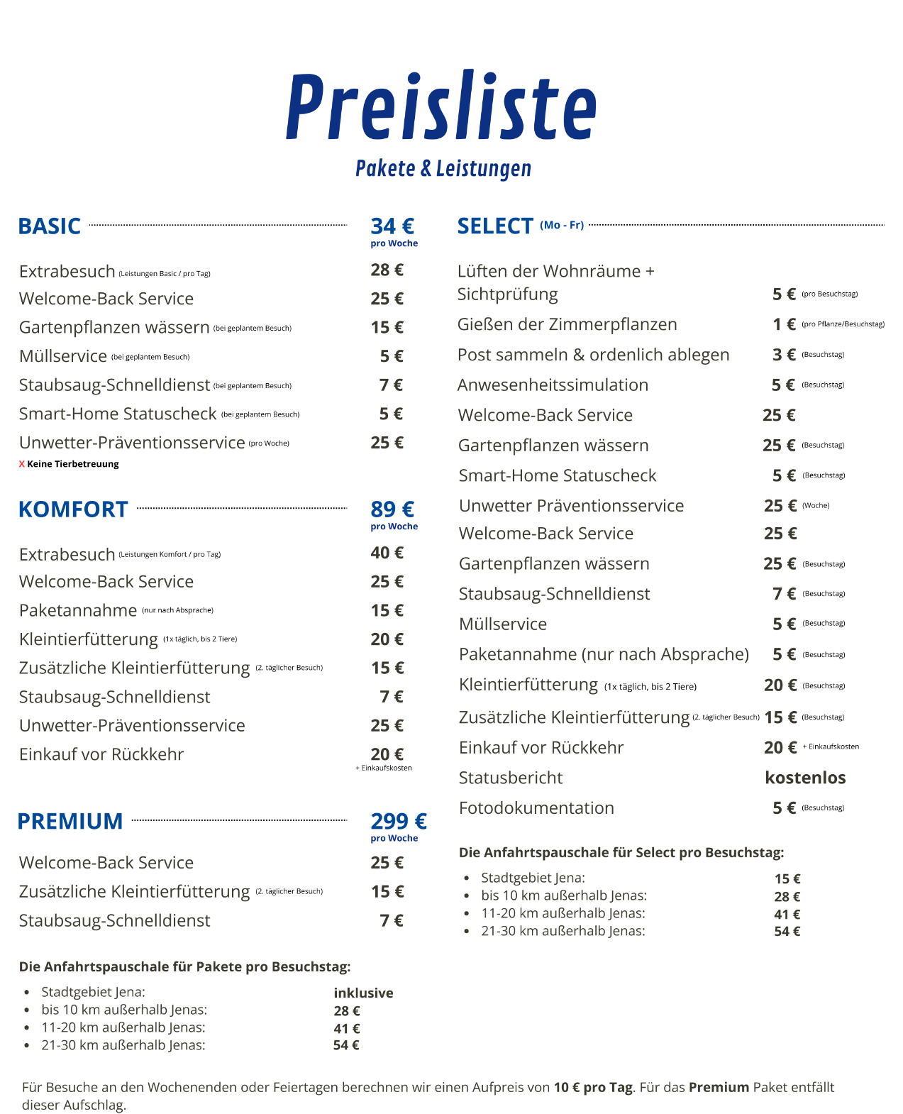 Zusatzleistungen werden ausschließlich im Rahmen der vereinbarten Besuchsfenster durchgeführt.
